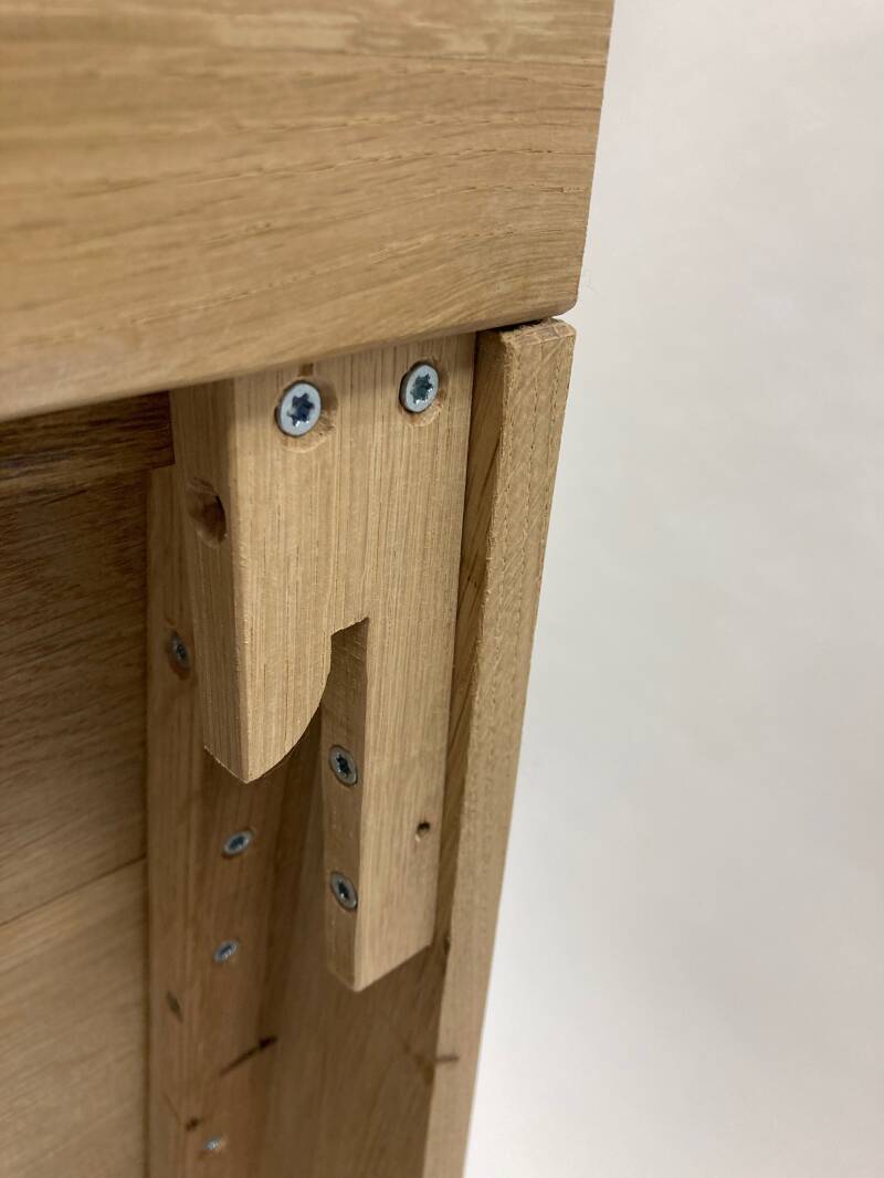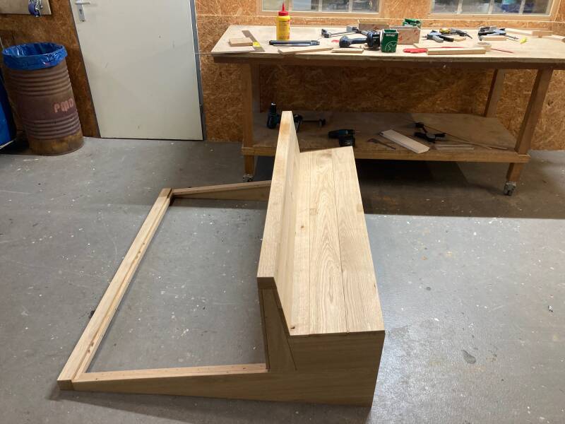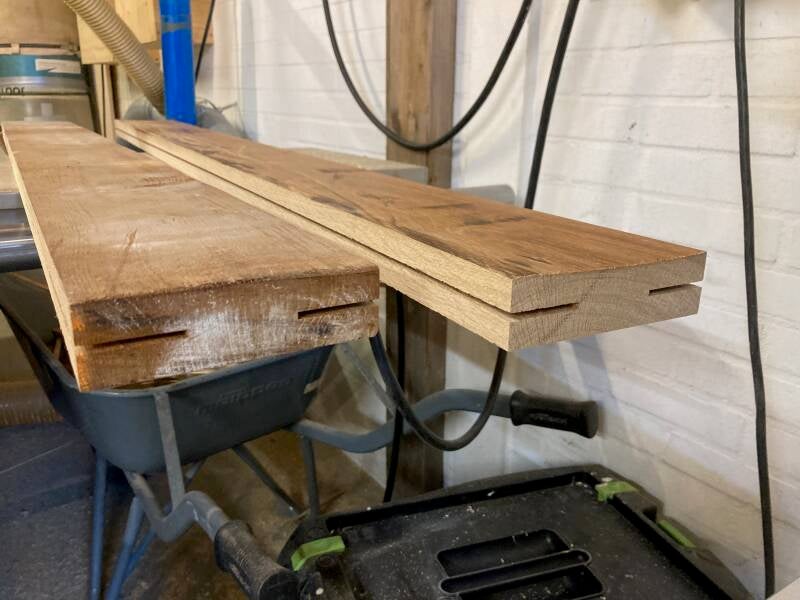 Samen met Marijn heb ik, van een oude eiken aftimmering uit zijn woonkamer, een nieuw meubel gemaakt voor in keuken. Hoe dik, hoe hoog? Het moet wel goed passen op de nieuwe plek in de keuken. Hoe maken we de zithoek. Hebben we wel genoeg hout?